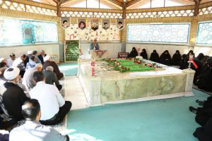 در پایان مراسم، شرکت کنندگان با ذکر صلوات و فاتحه، مزار سه شهید گمنام را غبارروبی و عطرافشانی کردند.
