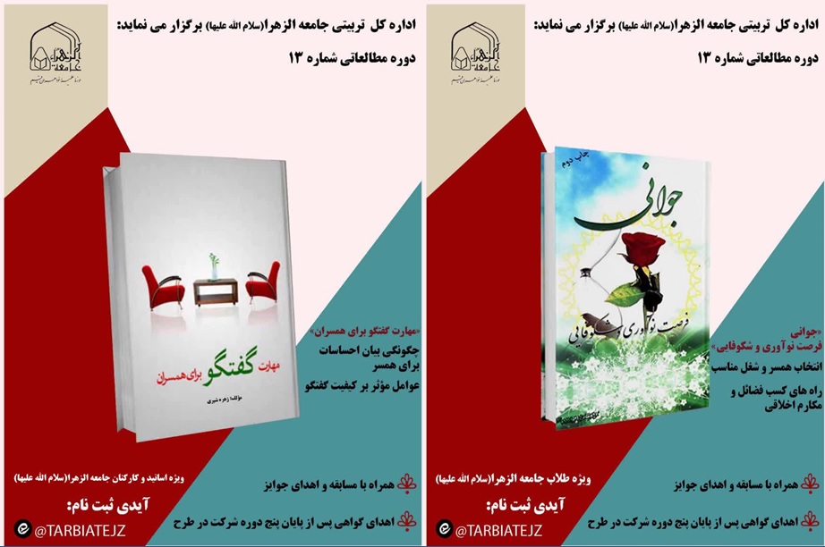به گزارش روابط عمومی، سیزدهمین مسابقه طرح مطالعاتی اداره کل امور تربیتی، ویژه طلاب، اساتید و کارمندان جامعه الزهرا علیهاالسلام با معرفی کتاب «جوانی؛ فرصت نوآوری و شکوفایی» ویژه طلاب و کتاب «مهارت گفتگو برای همسران» برای کارمندان و اساتید برگزار شد.