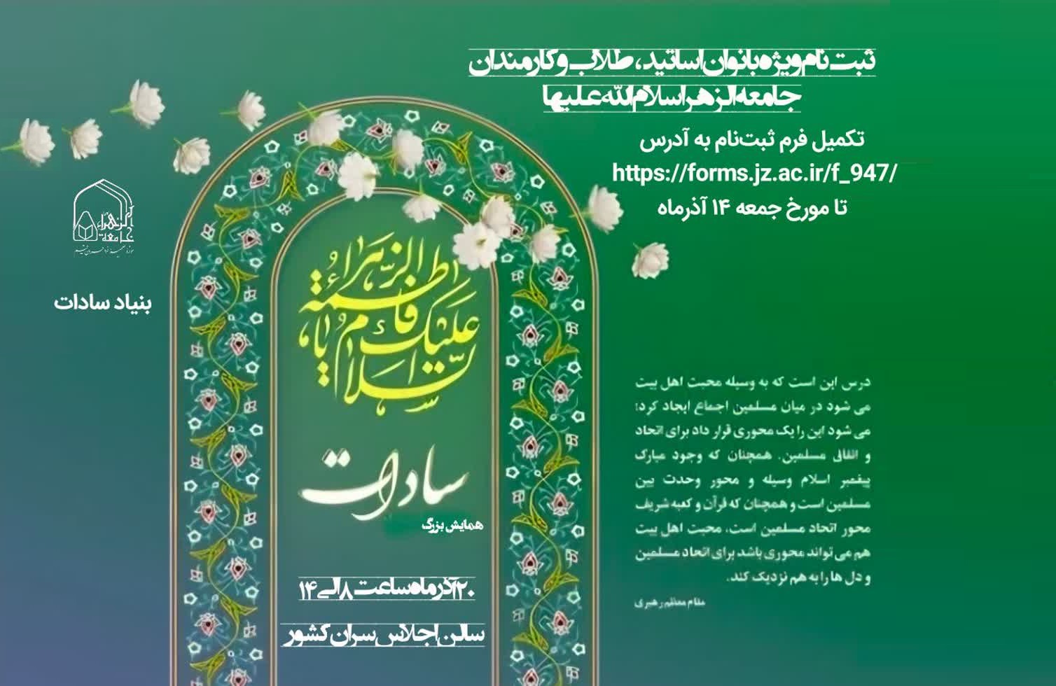 معاون تبلیغ و امور فرهنگی جامعه الزهرا سلاماللهعلیها با دعوت از بانوان طلبه سادات جهت حضور در این همایش، خاطرنشان کرد: به دلیل ظرفیت محدود، اولویت با افرادی است که زودتر ثبتنام کنند. همچنین مبلغ ۱۰۰ هزار تومان به عنوان بیعانه برای قطعی شدن ثبتنام دریافت میشود.