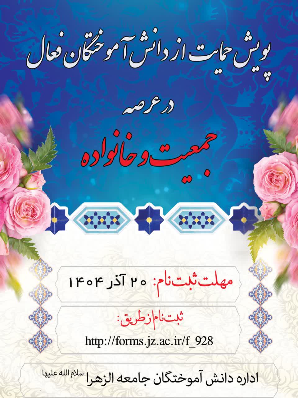 پویش حمایت از دانش آموختگان فعال در عرصه جمعیت و خانواده از سوی اداره دانش آموختگان جامعه الزهرا سلاماللهعلیها برگزار میشود.