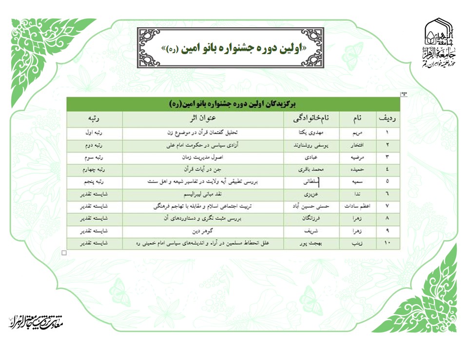 اولین جشنواره بانو امین(ره) | توضیحات بیشتر | برگزیدگان اولین دوره |